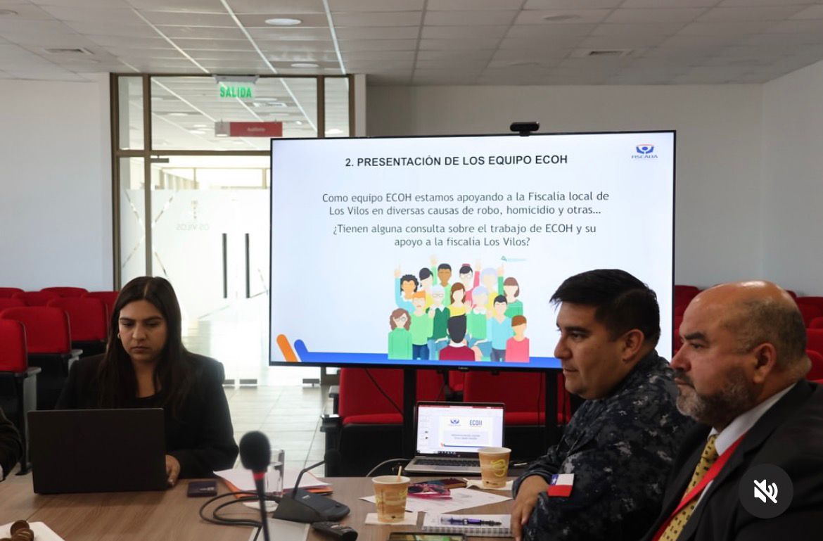 El administrador José Lagos, junto con dos abogados de la Fiscalía y una analista criminal del equipo ECOH, expusieron el apoyo en tramitación de las causas en la comuna, que tienen que ver con homicidios y otros delitos más graves.