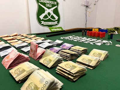 Respecto de otros dos personas - un hombre y una mujer - fueron formalizados por poseer pasta base de cocaína en 60 envoltorios, 4 millones 351 mil 300 pesos en efectivo, 15 cartuchos de escopeta y otro teléfono celular.