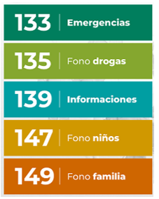 Carabineros de Chile dispone los siguientes servicios telefónicos: